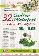 Das 32. Sölter Weinfest findet vom 08. bis 11. August 2024 auf dem Marktplatz von Salzgitter-Bad statt.