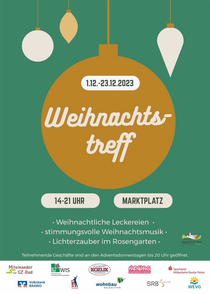 Der Weihnachtstreff 2023 findet vom 01. bis 23. Dezember 2023 auf dem Marktplatz von Salzgitter-Bad statt.